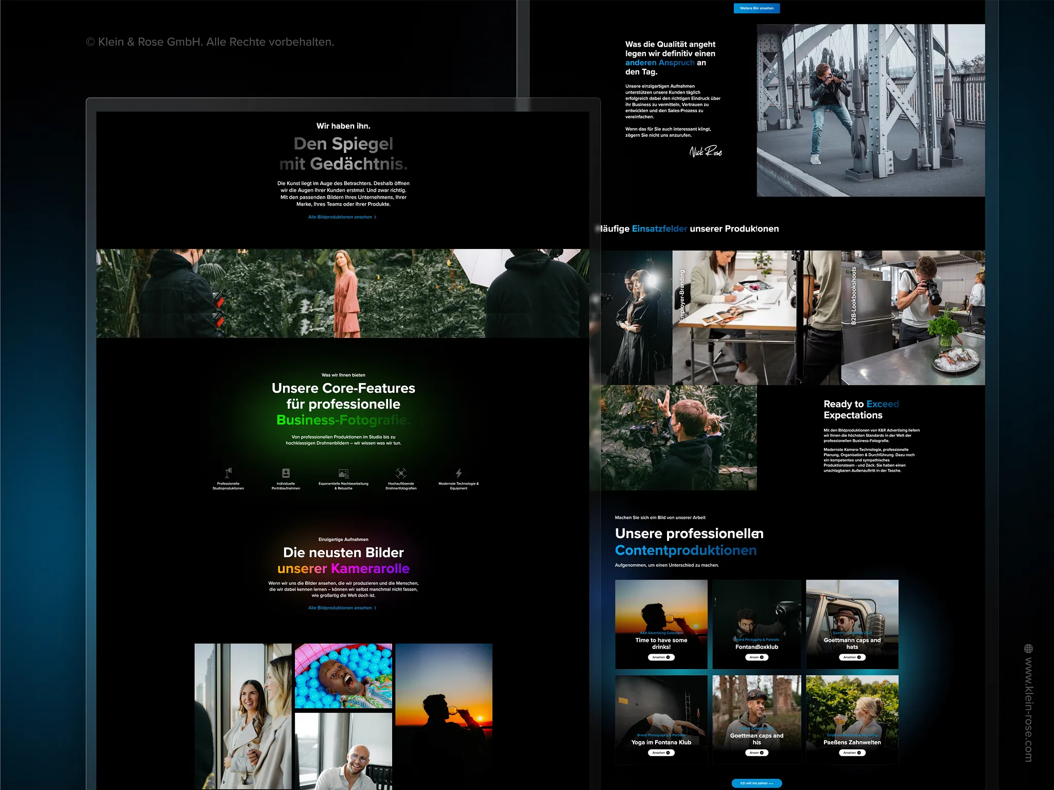 Bei K&R verbinden wir Business Fotografie mit Branding, Webdesign und SEO zu einem ganzheitlichen Markenauftritt. Weil wir wissen, dass Bilder allein nicht reichen, wenn sie nicht in eine klare Strategie eingebettet sind. Und weil wir aus über 60 Projekten wissen, welchen Unterschied es macht, wenn alles zusammenspielt.