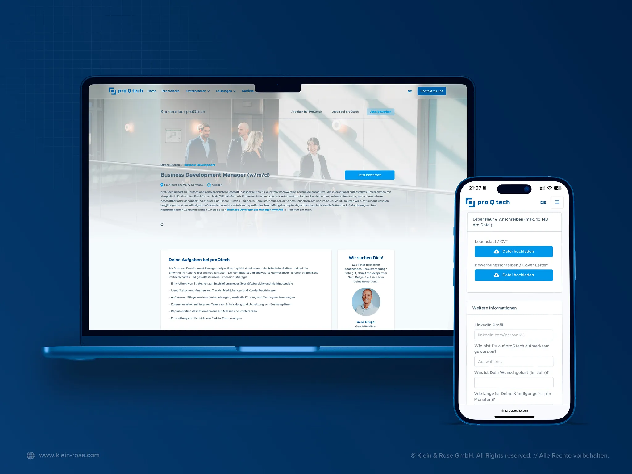 Ein Beispiel aus unserer Praxis: Als wir für proQtech, ein international tätiges Unternehmen in der Elektronik-Distribution, den kompletten Außenauftritt neu entwickelt haben, war eine der größten Herausforderungen, dass das Unternehmen fachlich hervorragend positioniert war, aber als Arbeitgeber am Markt kaum sichtbar. Die Lösung war ein ganzheitlicher Ansatz: Wir haben Brand Identity, Webdesign, SEO und Employer Branding als zusammenhängendes System gedacht, nicht als isolierte Einzelmaßnahmen. Das Ergebnis: Die Lead-Quote hat sich mehr als verdoppelt, typische Einwände bei Kunden und Bewerbern sind verschwunden, und das Unternehmen konnte sich sowohl am Absatz- als auch am Arbeitsmarkt deutlich stärker positionieren. Ein Verantwortlicher formulierte es so: „Die Marke arbeitet 24/7 für uns."
