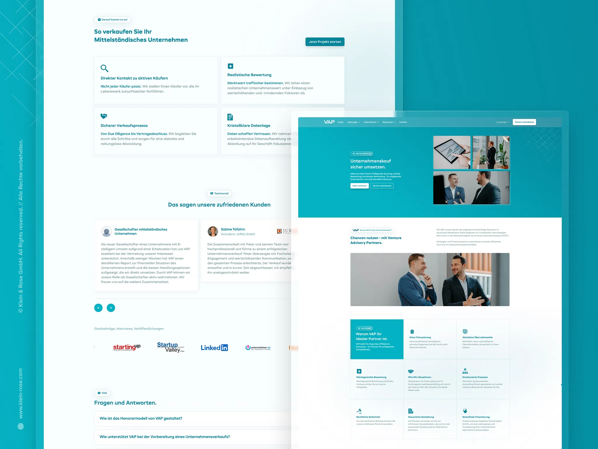 Wir haben den Relaunch exakt nach dem Prozess durchgeführt, den Sie in dieser Checkliste finden. Angefangen bei der Analyse des bestehenden Auftritts über ein neues Brand-Identity-Konzept bis hin zur technischen Umsetzung mit SEO-Optimierung. Das Ergebnis: Die Lead-Quote hat sich mehr als verdoppelt und typische Einwände im Vertrieb sind praktisch verschwunden.
