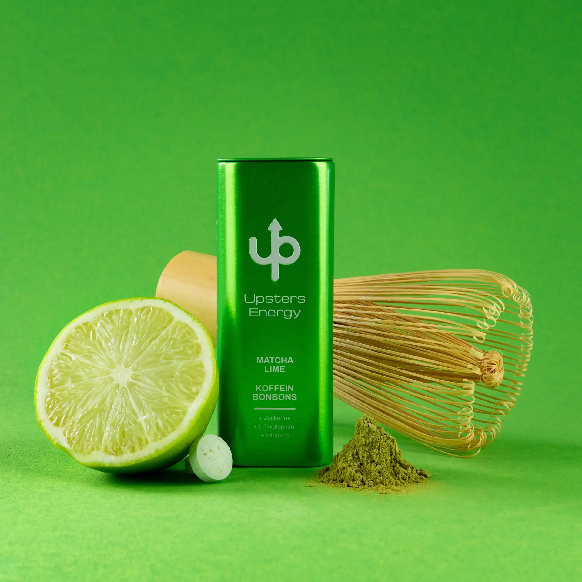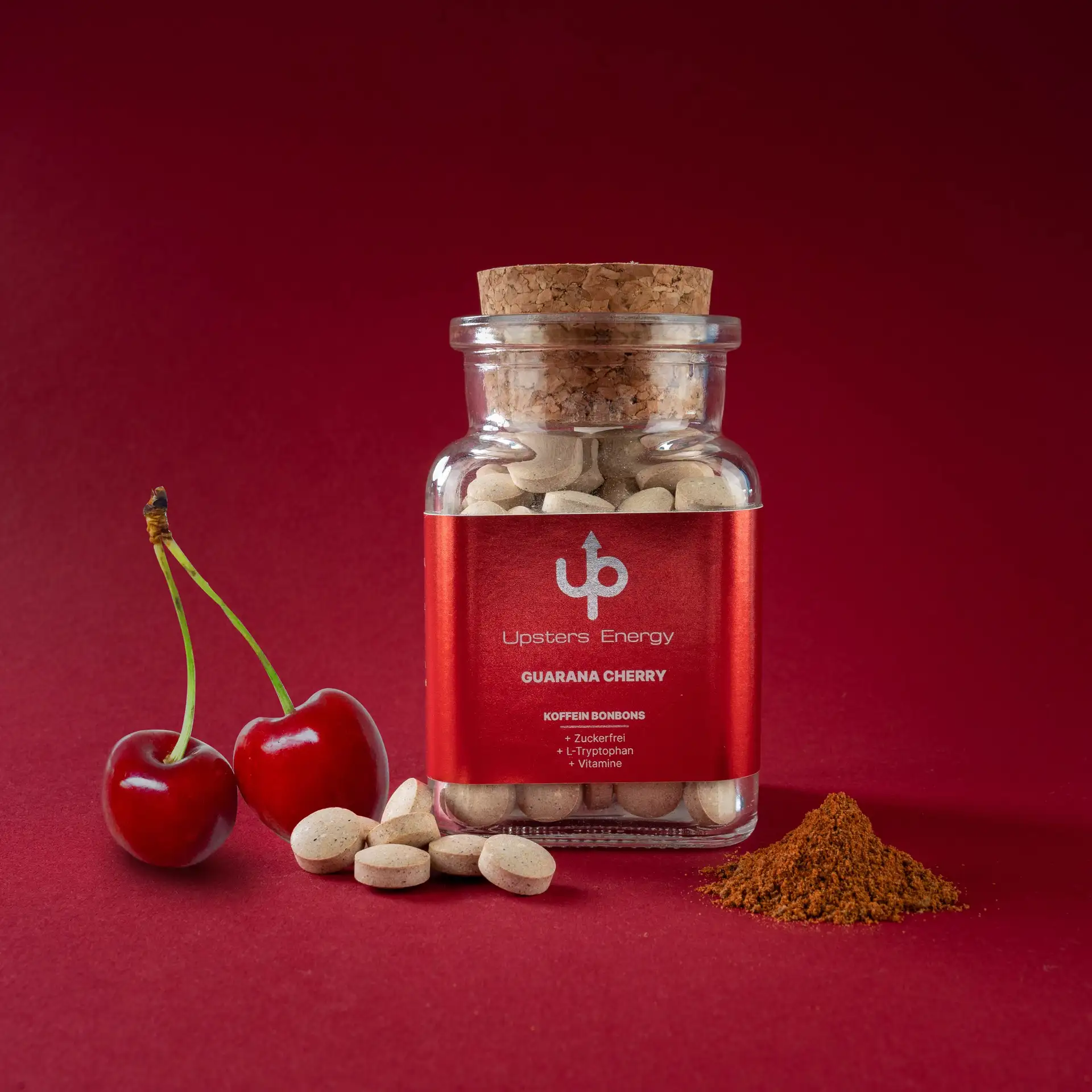 For Upsters Energy, we have made individual product photos that represent every flavor atmospheric in scene Set. Whether cherry guarana with fresh cherries and guarana powder or matcha lime with real tea and citrus zest — every motif was created before a matching color backdrop photographed and then extensively retouched.